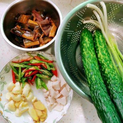 鳝鱼选土鳝鱼最好。 用新鲜的绿黄瓜口感比较好,不削皮,用钢丝球擦的方法洗掉刺和一部分皮,这样口感更好。