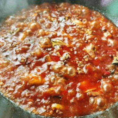 5、加入老姜蒜粒爆香,然后加入泡椒泡姜末和豆瓣酱翻炒均匀,炒香炒出红油,加入一小勺老抽翻炒。