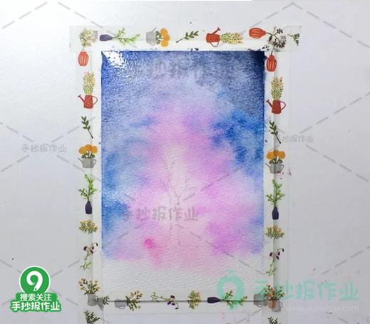 首先用铅笔起稿在中间画出树干的部分,用美纹纸把边均匀的贴好之后把它固定住。在线稿的中心向外侧依次上颜色,打造出星空的视觉~