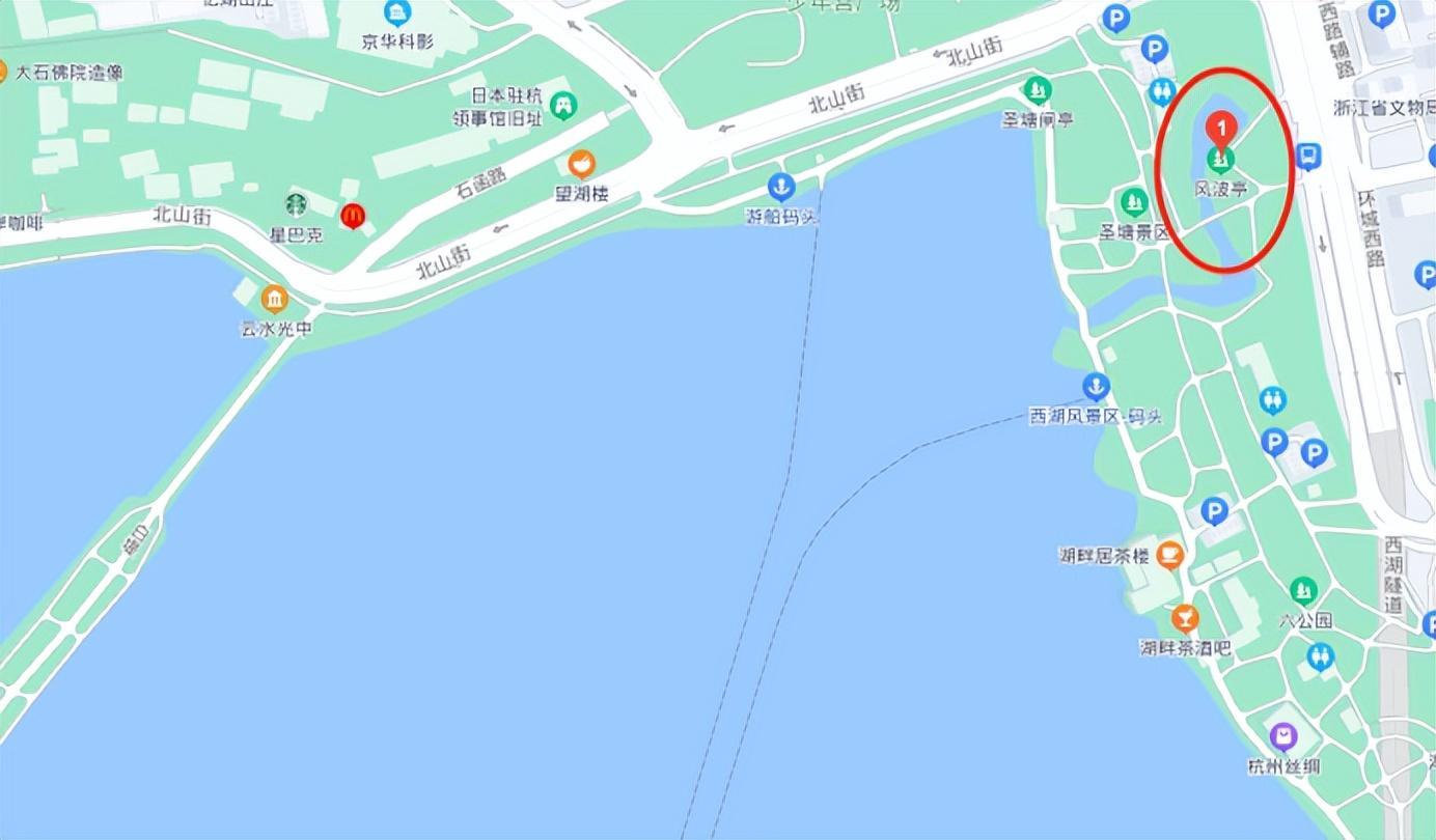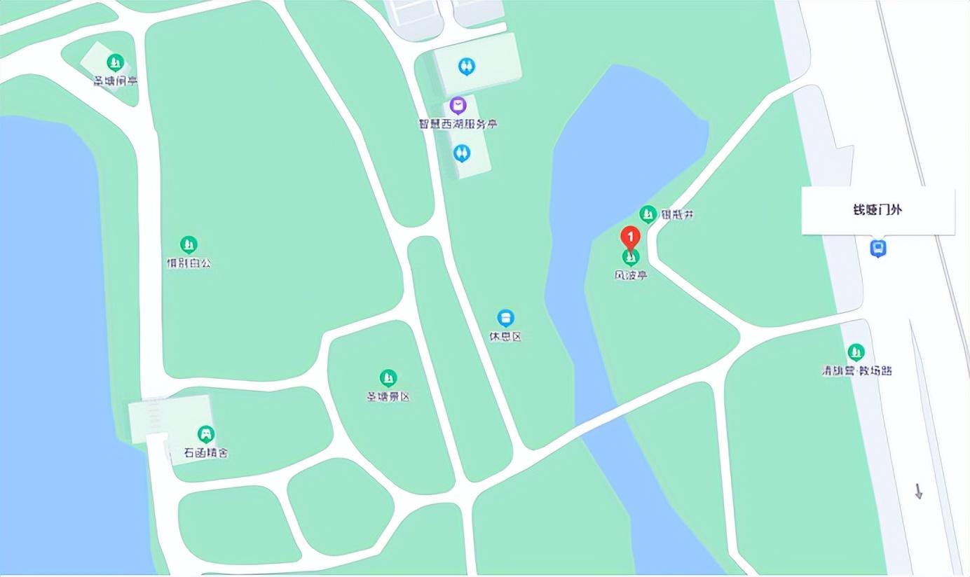 风波亭在古钱塘门边上,附近公交站叫“钱塘门外”,离“惜别白公”雕塑很近,离断桥其实也不远,但来此的游客却很稀少,一方面该地点有点隐蔽,不是游客游览路线的必经之地;另一方面在西湖有另外专门纪念岳飞的景点-岳王庙,岳飞墓也在其中。所以这里显得比较冷清。不过太热闹了也会让人感觉不对味,如同亭子周边高大的松柏一样,肃穆庄严为好。