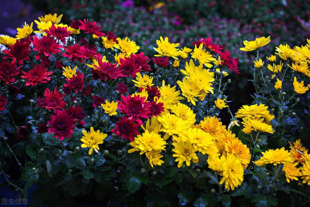 绿化路上的黄菊迎合着红菊,新鲜又开得“惊”艳