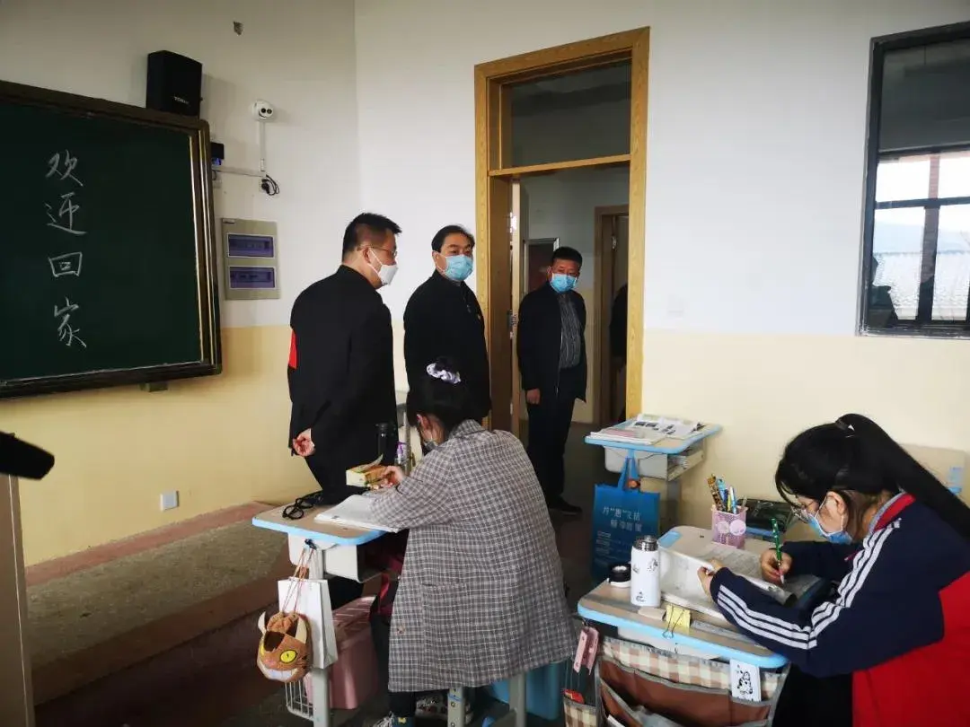 平顶山市委常委、宣传部长岳杰勇在市教体局党组书记、局长邱红标的陪同下莅临我校视察、指导开学工作。董事长关朝辉、副校长崔海涛、张金阳、王新伦及班子成员在一线指挥,学生有序进入校园。