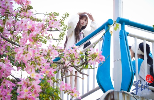 美丽异木棉旁,慕名而来的摄影师与模特。