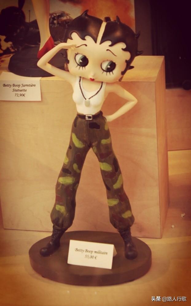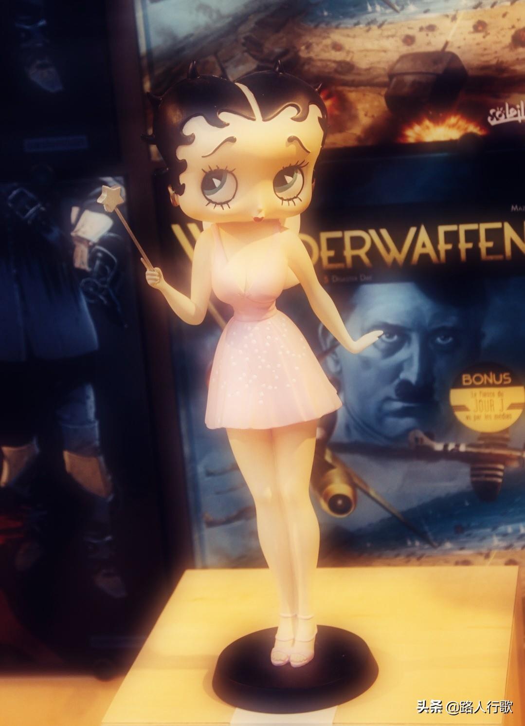 挡不住的诱惑便是,这些大大小小书店的橱窗⾥,总会有⼀个个惹⼈喜爱的⻉蒂娃娃(Betty Boop)),分外妖娆的站立其中