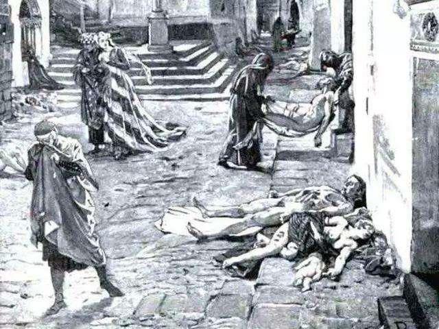 当时的黑死病起源于当时的中亚战争,当时的蒙古军攻打黑海港口城市卡法 。因为久攻不下,于是就想出了“细菌战”这个损招。他们将满身黑泡,因为鼠疫而死的人的尸体,用投石机抛进了卡法城内。这一招果然奏效,卡法城里立刻出现了严重的瘟疫,虽然最后卡法城被攻破,但是鼠疫的扩散更厉害,很快就在其他殖民城邦当中蔓延。