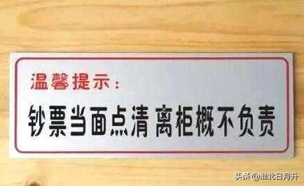 以前银行的柜台多数都摆着一副“当面点清离柜概不负责”告示牌,现在这种牌子少了,但是银行的做法却没多少改变-如果储户发现有问题回来反映解决,就用当面点清离柜概不负责来忽悠储户。
