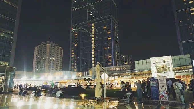 这就是夜晚IFS的楼顶,这一层有很多网红美食,如果周末来,排号会排到你心累