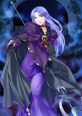 她的真身是希腊神话的背叛魔女美狄亚[Medea]。拥有现代的魔术师不能相比的实力,即便是大魔术也能用一工程来发动。她发挥出这项本领,实践了以从者(Servant)之身作为御主(Master)召唤出Assassin此等绝技。宝具是把时间持续的所有魔术,回归到被施行之前的状态的解咒短刀"万符必应破戒(Rule Breaker)"。某意义上,能说是把她的人生具现了出来的宝具。