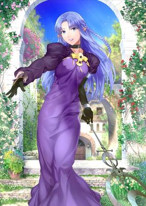 人设原画葛木宗一郎的Servant(从者)。职阶是以魔术为专长的"Caster"。Caster在许多从者都具备对魔力能力的圣杯战争里被称作最弱,她为了弥补这点而从城镇的人们身上吸取生命力,当成魔力。