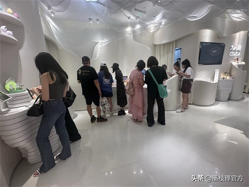 实体店成为许多年轻人前来打卡的地方,顾客络绎不绝,大多为年轻男女。有的是单独逛,也有年轻伴侣,以及结伴的闺蜜和哥儿们。