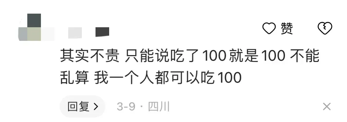 其实不贵,只能说吃了100就是100,不能乱算,我一个人都可以吃100。