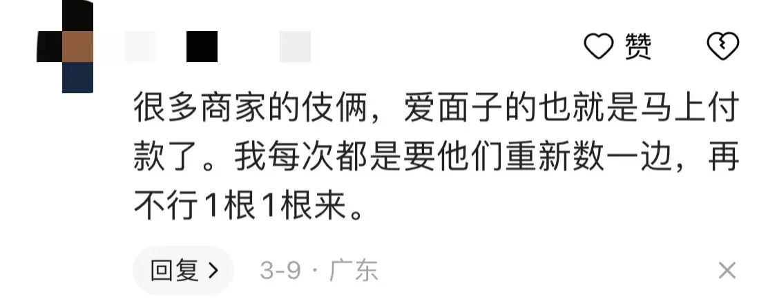 很多商家的伎俩,爱面子的也就是马上付款了,我每次都是要他们重新数一遍,再不行一根一根来。