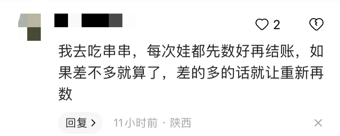 我去吃串串,每次挖都先数好再结账,如果差不对就算了,差的多的话就让重新再数。