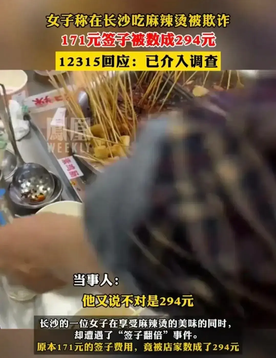 171元的麻辣烫硬是被服务员数成了294元,是的你没有听错,事情发生在长沙的一家麻辣烫店,一女子和朋友去吃麻辣烫,结账时服务员一开始说是194元,随后改口294元,女子要求重数,最后却成为了171元。事后品牌方给予顾客20倍赔偿,与涉事店解除关系,目前12315已经介入,涉事门店已经关闭。