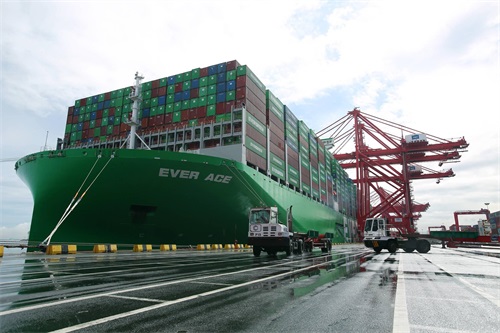 世界最大的集装箱船是来自中国台湾的“长范”轮。这艘巨轮拥有超大的装载容量,可装载超过21000个标准集装箱,其总长为399.9米,型宽为58.8米,型深为32.5米,最大载重量为22.5万吨。