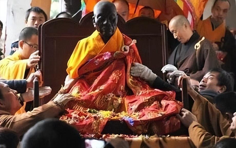 内战时期,为了铲除宗教,消灭妖魔鬼怪,红卫士用锤子在大师的胸口上挖了一个小洞,以检验惠能大师是否是假的。当场,他们吓得跪下磕头。