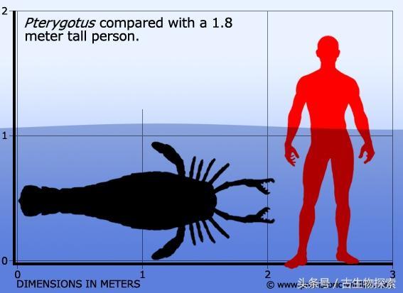 从分类上看,翼肢鲎属于节肢动物门-螯肢动物亚门-肢口纲-板足鲎类,这个家族中最大的成员是莱茵耶克尔鲎(Jaekelopterus),体长接近3米,是目前已知地球上生存过的最大海生节肢动物,在以后的科普文中会专门介绍的。
