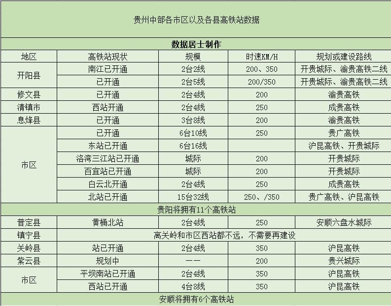 贵州中部将有16个高铁站,安顺地区不足贵阳的一半