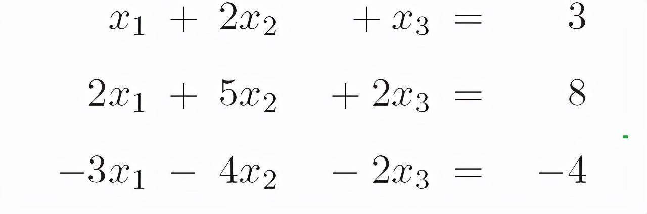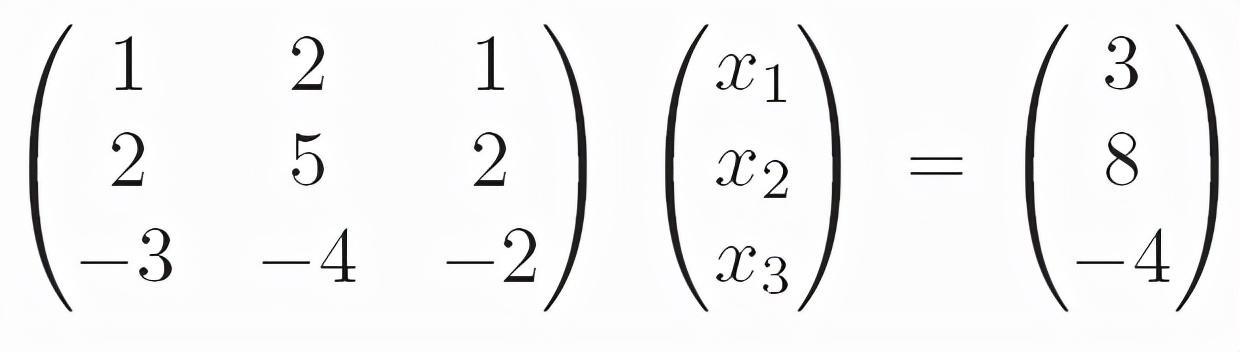 代数方程可以用矩阵的形式表示。下列是三元一次方程组: