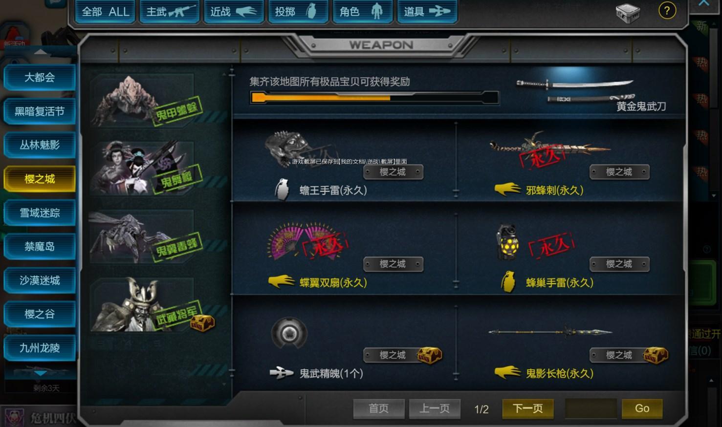 樱之城还差精魄蛤蟆手雷和长刀 长刀还差一个首胜碎片