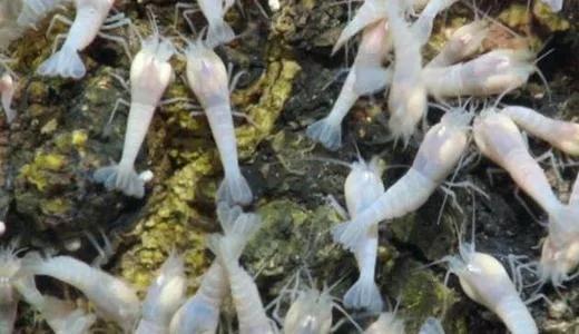 白色盲虾的日常生活。其实它们并不是生活在450°C高温的海水里的。这和它们的觅食习惯有很大的关系。出去觅食关键是安全,如果你出去找吃的,一个不小心就会变成别人的食物。在剧烈的火山活动结束之后,海水温度渐渐降了下来,这时候背部的发光组织可以通过感应海水温度,找到火山口,这种发光的背部还能吓走一些天敌,从而保护自己。