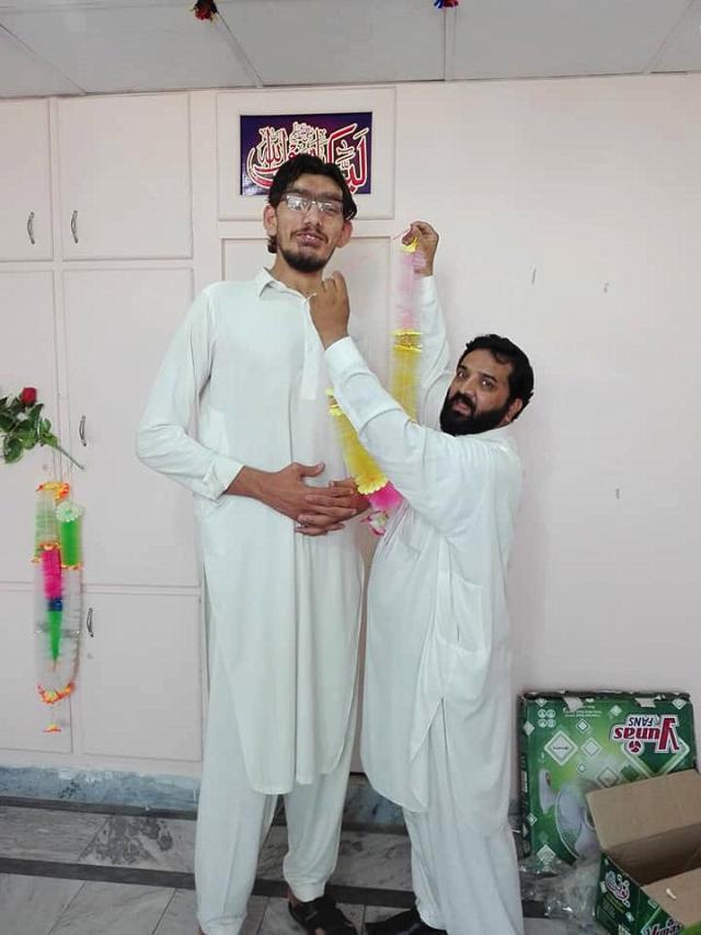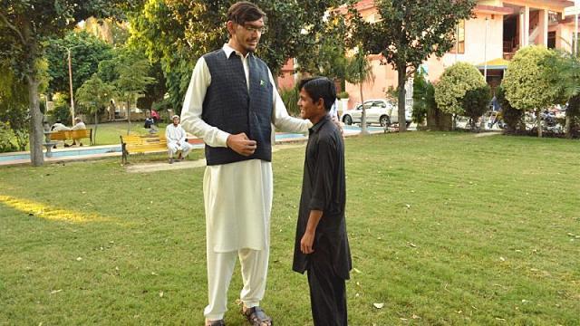 据外媒10月14日报道,这名男子叫做Muhammad Amin Tanoli,今年23岁,来自巴基斯坦曼塞拉。虽然身高7英尺8英寸(约2.34米)的他生活中有很多烦恼,但他却从没抱怨过,因为他喜欢受到其他人的关注。