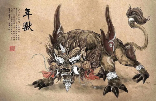 在古代中国,每到新年之夜,村民们都会提心吊胆地守夜,因为传说中会有一种凶猛的怪兽闯入村落,吞噬村民。这种怪兽被称作年兽,又名“年”。在《沪壖话旧录》等清末民初的报刊文章中,年兽的形象被描绘为一只被锁在石柱上的动物,由紫微星君看管。