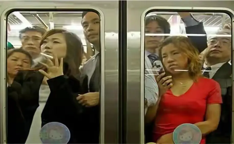 在超负荷的列车上,猥亵者趁机动手动脚,进行各种骚扰行为,这在日本被称为“咸猪手”。