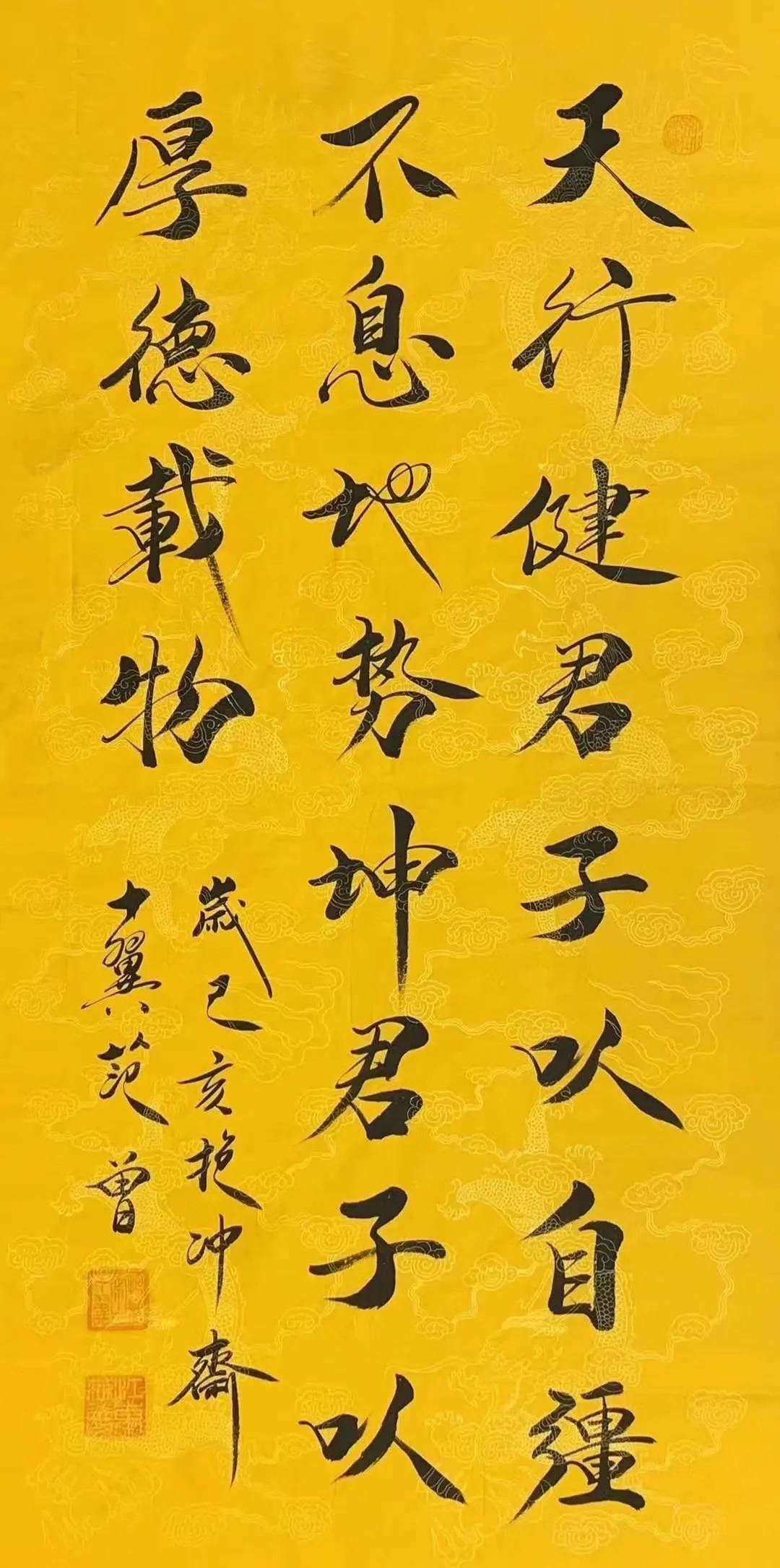 范曾先生的书法,还有一大特点就是,结字俊朗,清新隽逸,大气凝重,独树一帜。在结构上力求方正,在方正中求险绝,笔拙墨秀,灵动舒畅,美丽可观。