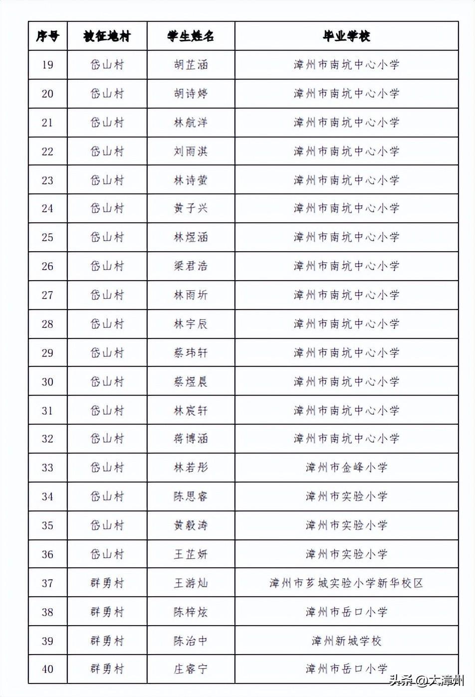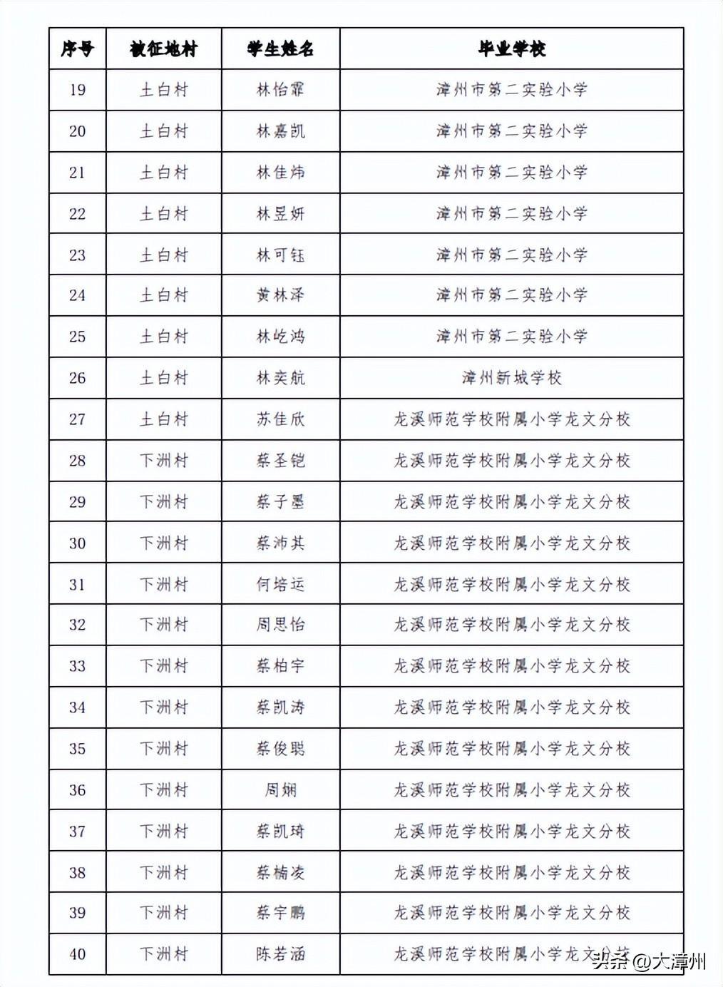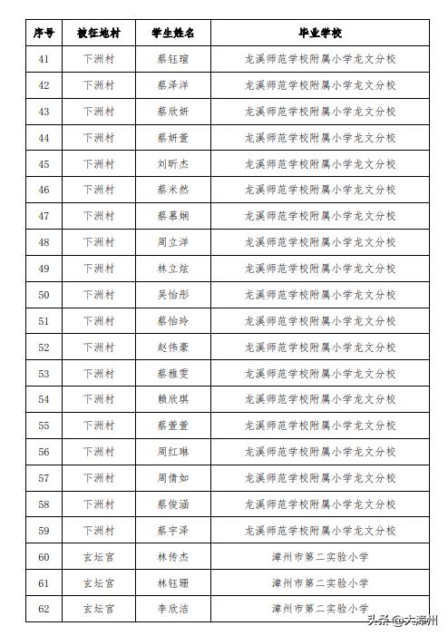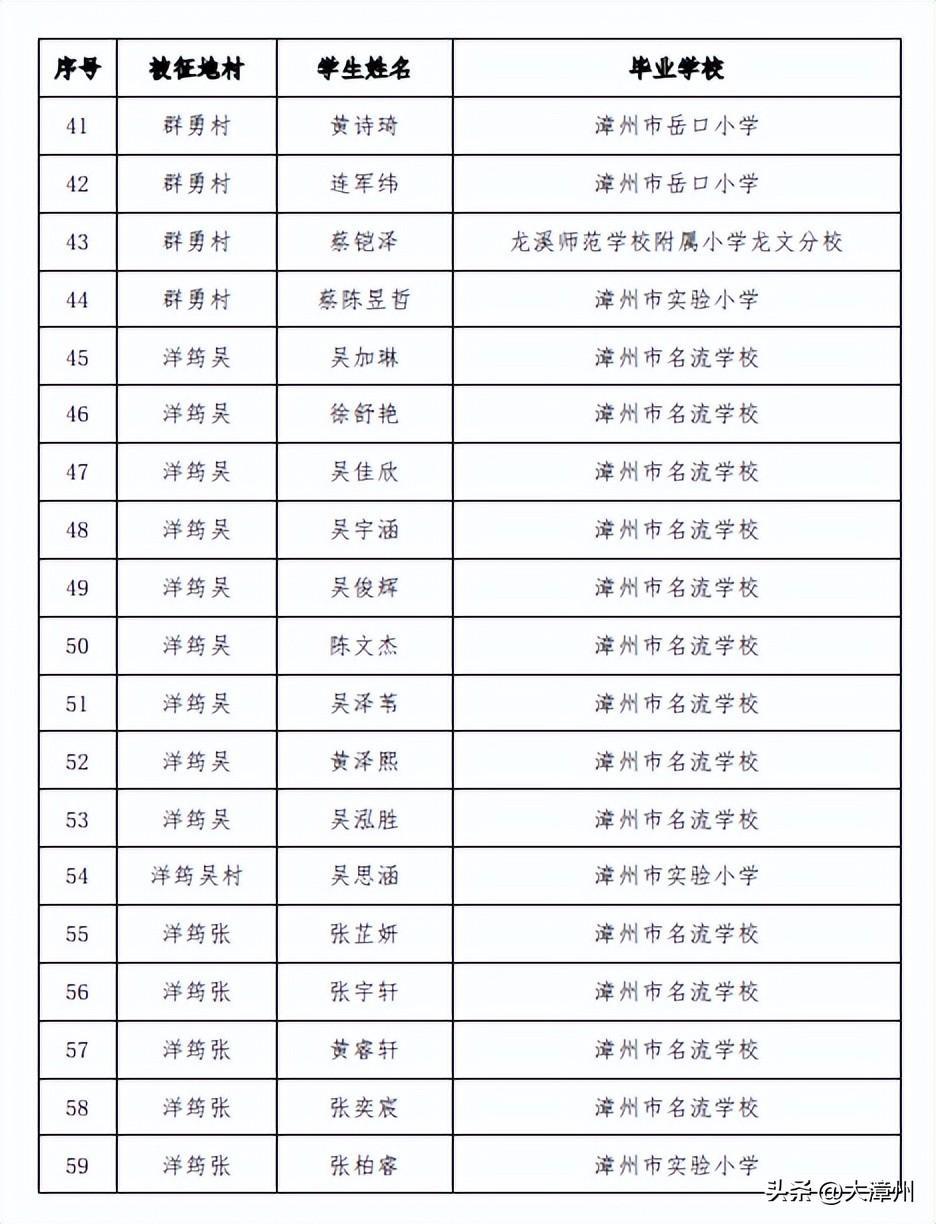 3. 2023年漳州三中分校初一年级征地协议生名单