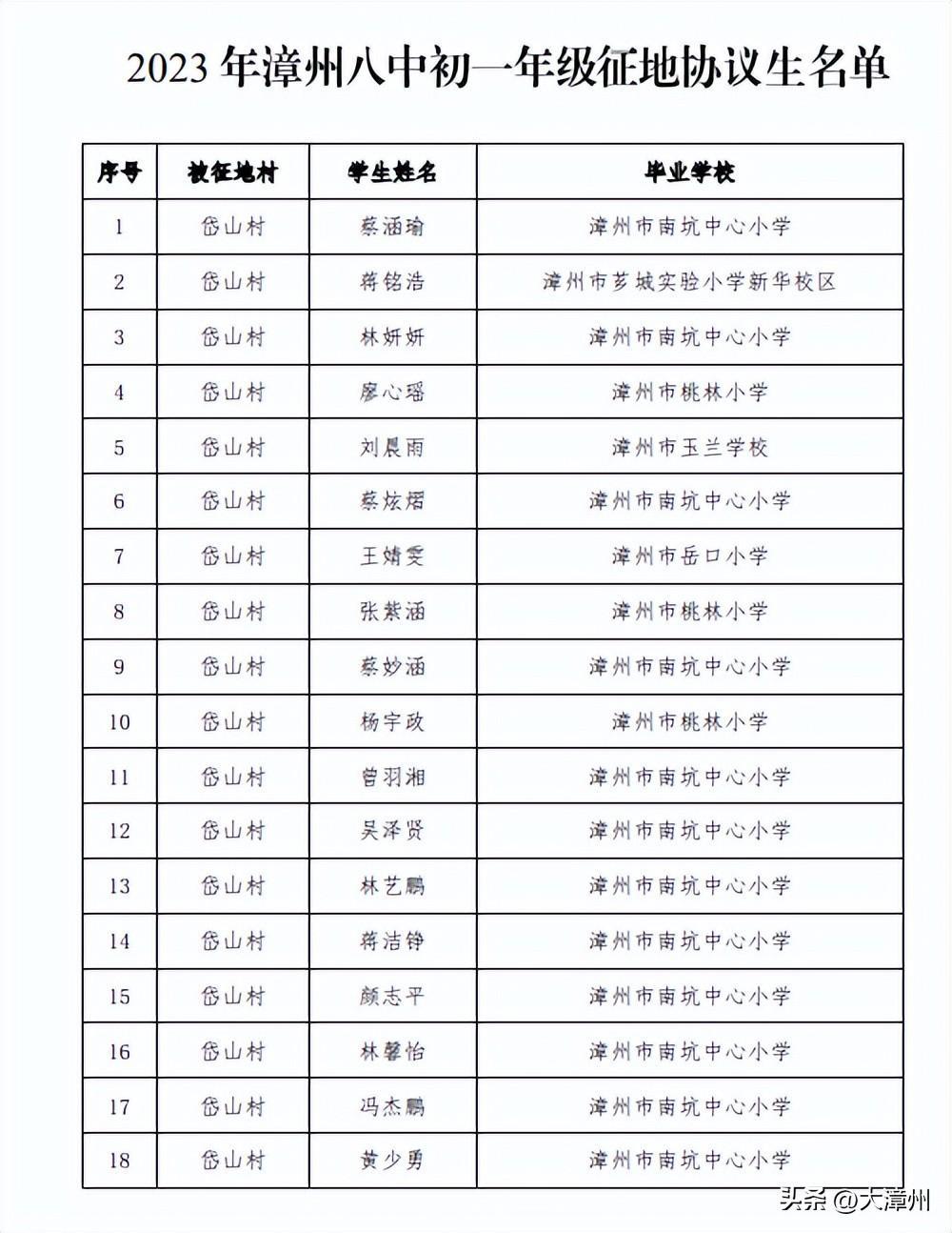 附件:1. 2023年漳州八中初一年级征地协议生名单