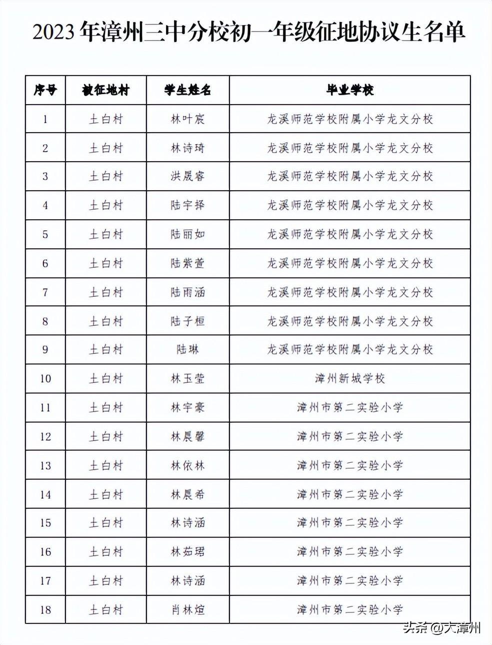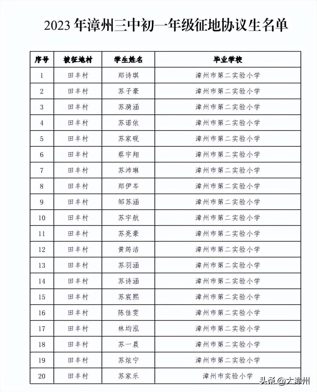 2. 2023年漳州三中初一年级征地协议生名单