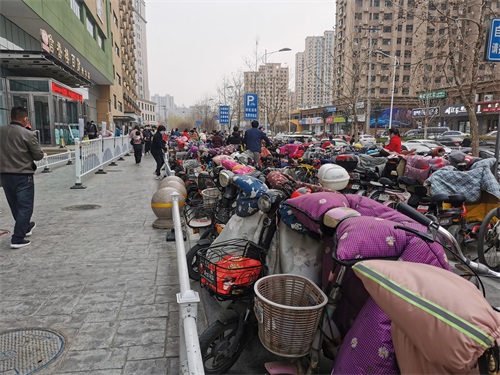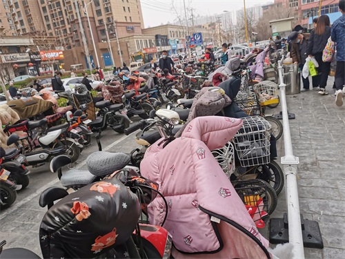 门前的电动车停的密密麻麻的在照片上看,你就像蚂蚁一样。