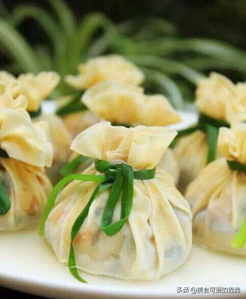 8、韭菜在热水中烫一下,过凉开水,系在炖好的八宝钱袋上做下装饰即可 小贴士: 1、肉、虾仁本身有鲜味,所以炒馅料的时候加适量盐即可,不需要再加鸡精啦