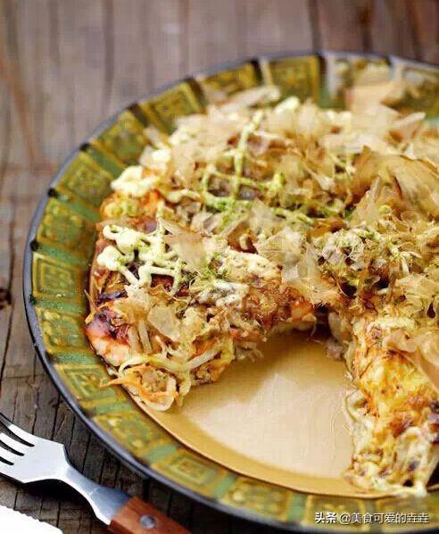8、出锅淋好烧酱和美奶滋,缀以鲣鱼花和海苔粉即可享用。
