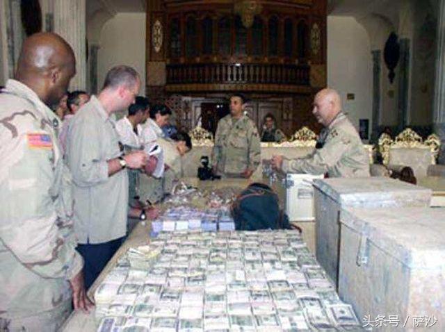 2003年美军打下巴格达后,发现萨达姆将大量美金胡乱存放:美军4月22日在伊拉克首都巴格达的一处高档居民区内有发现了1.12亿美元的现钞,这笔巨额美元分别被藏匿在这一居民区的7个狗窝内和花园里。4月18日,美军曾在同一社区的4栋小屋内发现6.56亿美元的现钞。