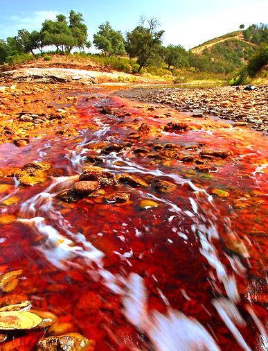 红酒河位于西班牙,这里曾经有一座欧洲最大最古老的矿场,因此河流中富含黄铁矿和铜矿,这些矿物质将河水变成了红色,宛如一汪红酒池一般。