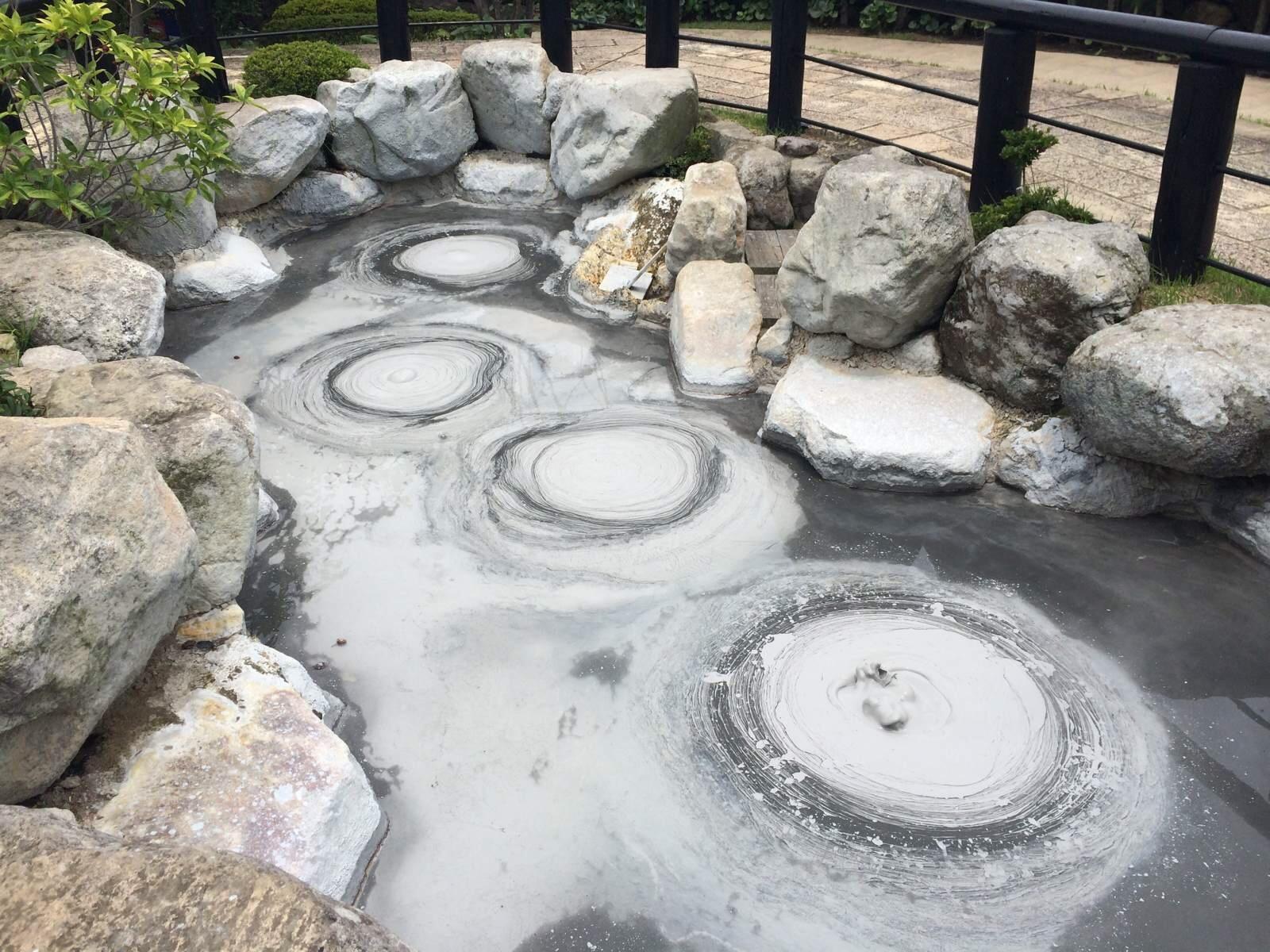 鬼石坊主地狱,坊主是和尚意思,鬼石是地名,可以理解为鬼石和尚地狱。因为池中沸腾的池中热泥,不断往外冒泡,彷佛和尚的脑袋一样,所以被称为鬼石坊主地狱。