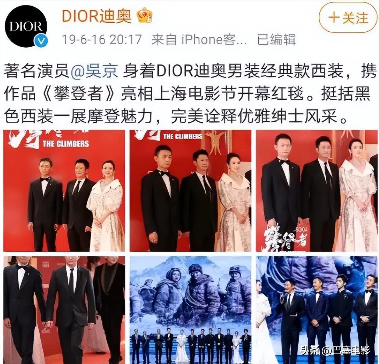 吴京平常时常穿着也节省,他结婚的西装虽然是大牌,却陪他出席了各大活动和场合,以至于他每次参加活动,品牌方就出来认领一次,而且大概年代有些久远,可能迪奥自己都忘记是什么系列,于是@时候就叫经典款,真是蹭热度蹭的特别搞笑。