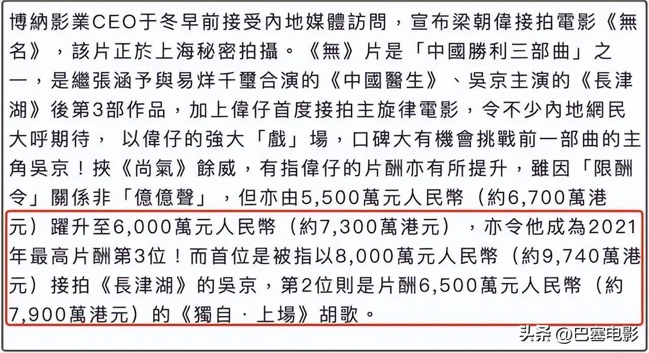 不过,之前吴京并不出名,挣得也不多。据爆料称在2015年以前,片酬只有100万到300万,算是娱乐圈中的普通打工人水平。