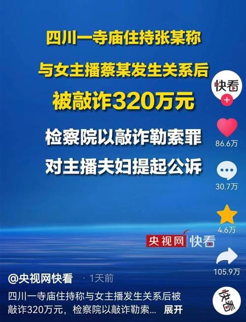 佛教界的震惊!四川佛协副会长因涉嫌与女主播发生关系并被敲诈320万而遭免职。这起爆发性新闻迅速传遍全国,引发了公众的广泛关注和热议。
