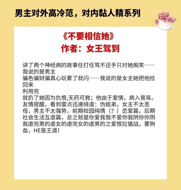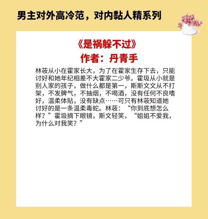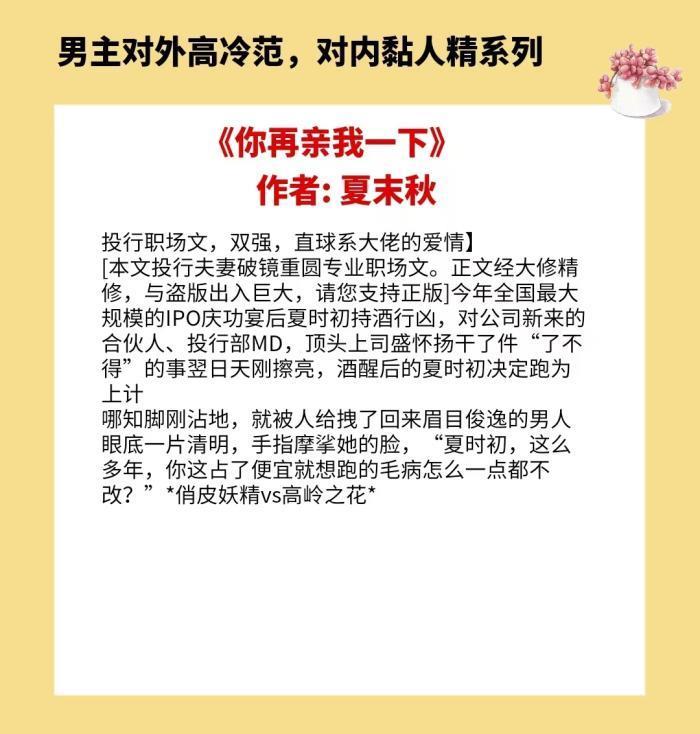 以上就是4本男主对外高冷范,对内黏人精的小说的全部内容,喜欢这种类型的姐妹们记得点赞和收藏哟,咱们下期再见喽~