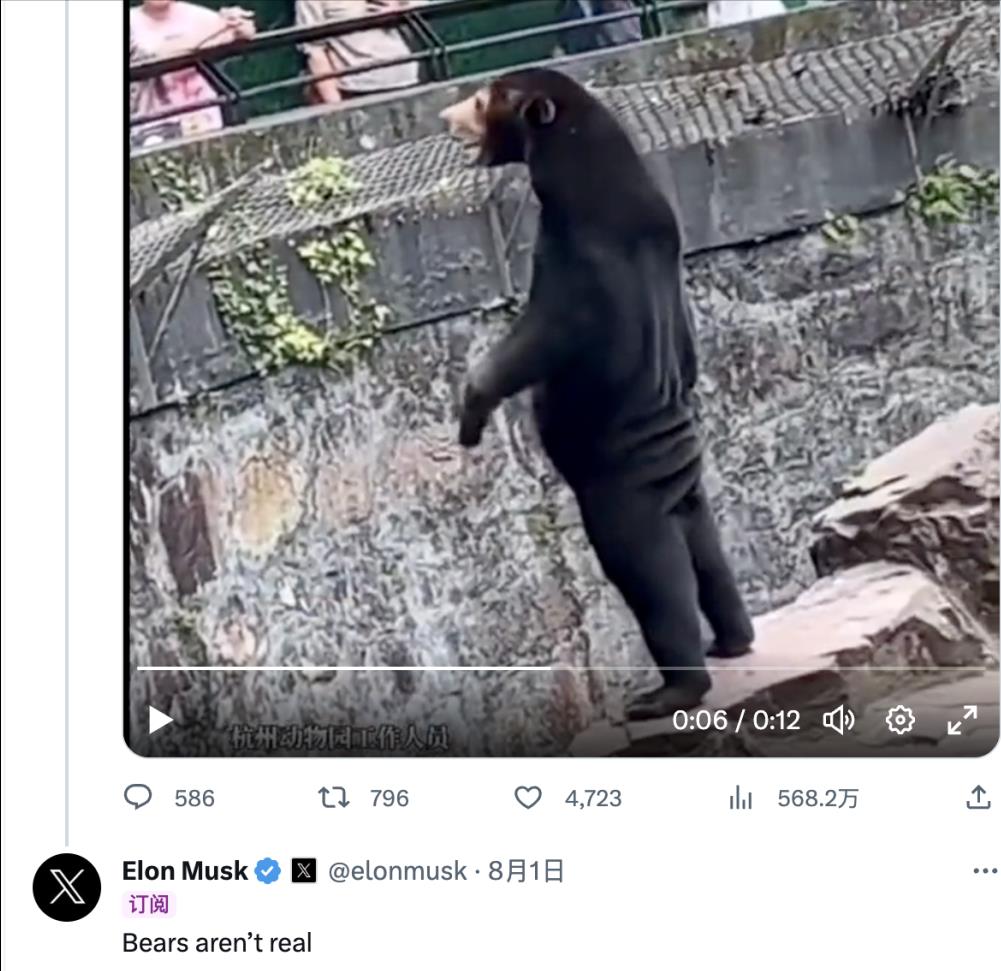 在中国杭州动物园,一头名叫“安吉拉”的马来熊引起了全球的关注。这只熊的行为举止与人类极为相似,让人们开始质疑它是否真的是一只熊,还是有人穿着熊皮套假扮的。这个问题在全球范围内引发了热烈的讨论,甚至连马斯克都加入了讨论。