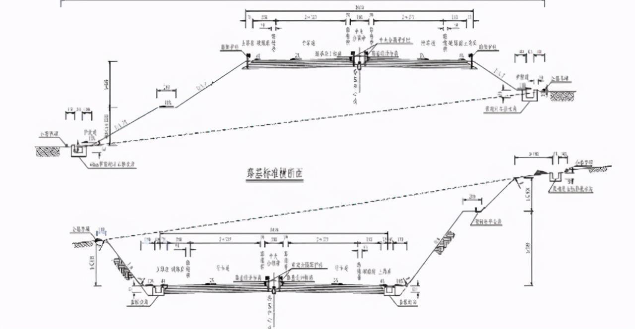 采用设计速度为 100Km/h、路基宽为 33.5 米的双向六车道高速公路标准,相应结构形式为:行车道宽 2-3×3.75 米,左侧路缘带 2×0.75 米,硬路肩为 2×3.0 米,土路肩为 2×0.75 米,中央分隔带宽 2.0 米。行车道、硬路肩横坡为 2%,土路肩为 3%。当圆曲线半径 R<4000 米时,设置相应超高。