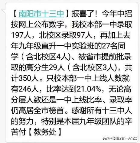 从近三年升南阳一中录取情况看,激昂奋进的南阳十三中