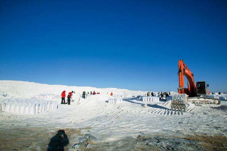 察尔汗盐湖位于柴达木盆地的中南部,“察尔汗”蒙古语的意思即“盐泽”。察尔汗盐湖总面积5856平方公里,这里蕴含着丰富的食盐、钾、镁,储量超过死海和美国的大盐湖。中国钾肥的主要产地就在察尔汗盐湖区。照片中堆积如山的白色物品就是农民视若珍宝的钾肥,这里是青海盐湖集团年产百万吨的钾盐公司的货场。摄影/单之蔷