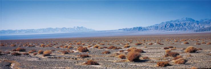 平坦、辽阔、干旱、苍凉、寂静、荒芜……这就是柴达木的景色给人的感受。远处的山是低山,干燥、剥蚀严重,从山上剥蚀下来的物质又被极少的降水从山里冲下来,形成了这广阔的倾斜的山前冲积平原,仅仅是在山脚下因那珍稀的少量的水的滋润,才出现了这一丛丛植被。因为有了这些植被,画面才获得了生机和美感。摄影/张超音