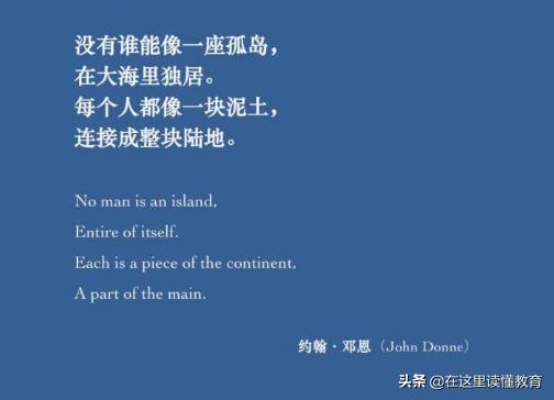 《没有人是一座孤岛》是十七世纪英国玄学派诗人约翰·多恩John Donne(1572 - 1631)的著作。约翰·多恩又译邓约翰,是英国詹姆斯一世时期的玄学派诗人,他的作品包括十四行诗、爱情诗、宗教诗、拉丁译本、隽语、挽歌、歌词等,代表作有《日出》,《歌谣与十四行诗》,《神圣十四行诗》《给圣父的赞美诗》 等。