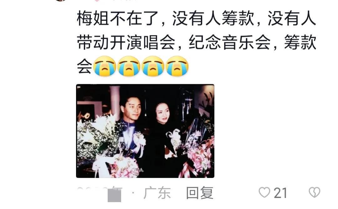 梅姨不在了,也没有人筹款,没有人带动开演唱会,纪念音乐会,筹款会。虽然我是80后 但我依然记得92年华东水灾,梅姨带领最火的那一大批港台明星表演汇捐。好像那一天就集了一亿多港币。