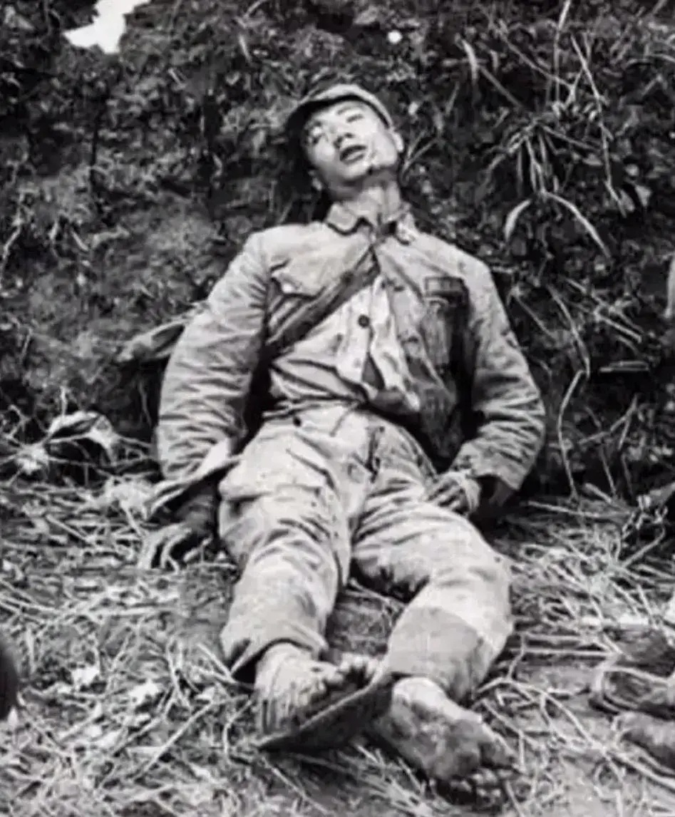 徐州会战1938年1月至5月,中国军队在以徐州为中心的津浦、陇海铁路地区对日本侵略军展开的大规模防御战役。1938年3月,日寇第十师团逼近徐州北边门户滕县。3月14日,滕县保卫战打响,国军第四十一军第一二二师参战,第一二二师是出川抗战的川军,所有官兵与日敌激战三天三夜,师长王铭章壮烈殉国,王明章是徐州会战中战死的最高将领,之后他被国民政府追赠为陆军上将。令无数人泪奔的川军阵亡将士照片!他身上穿着单薄的外衣,脚上穿着一双草鞋,可以看出当年抗战的条件有多么艰苦。牺牲后的将士,面容安详,宛如沉睡,也并不知道他的名字,只知道他是牺牲的60多万川军将士中的一员。在此向抗战牺牲的川军将士致敬,一寸山河一寸血,十万青年十万兵!